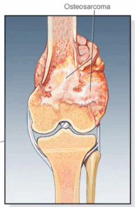 Bone cancer is a growth of cells that starts in a bone. Bone cancer can start in any bone. But it most often affects the thighbone.